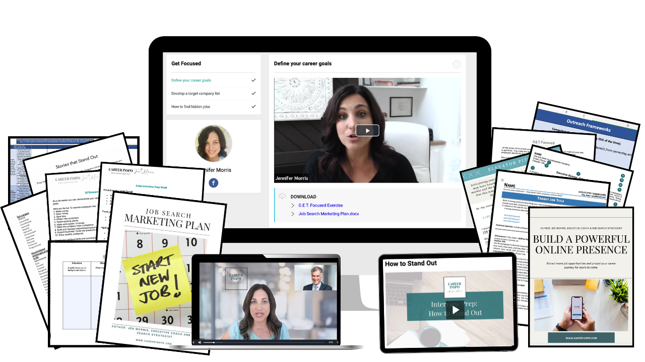 Get immediate and lifetime access to members-only videos, cover letter templates, planning worksheets, and scripts. No more scouring the internet for random tools and advice.